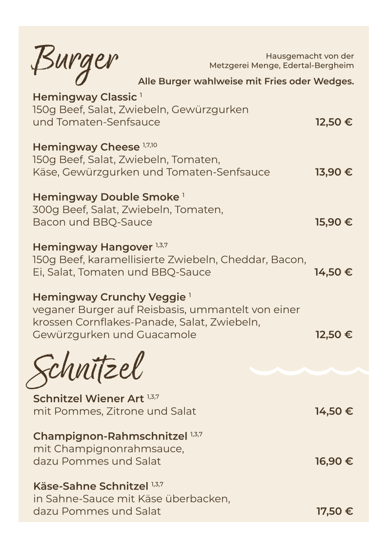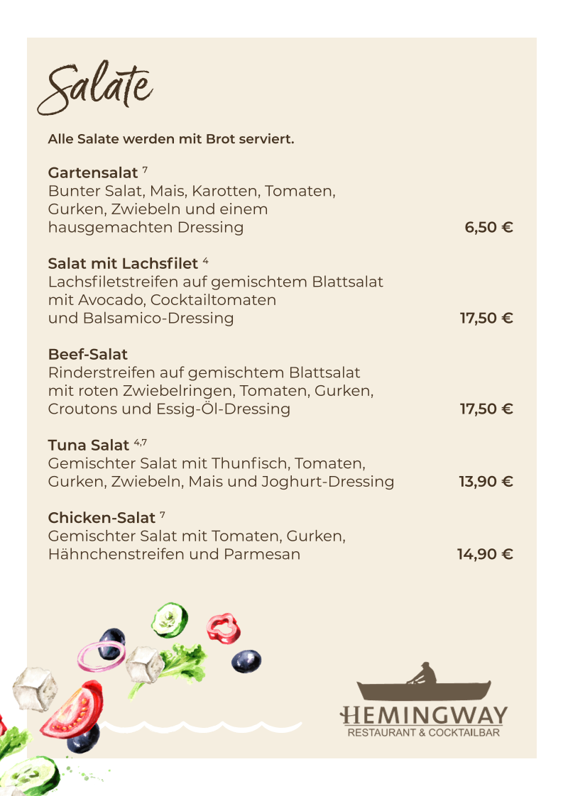 Welcome to Hemingway Restaurant & Cocktailbar, a hidden gem nestled in the heart of Bad Wildungen. This delightful restaurant bears the name of the iconic author, reflecting a blend of creativity and sophistication that permeates its menu. Located at Brunnenallee 34, Hemingway invites you to indulge in a culinary journey marked by carefully crafted dishes and exquisite cocktails.